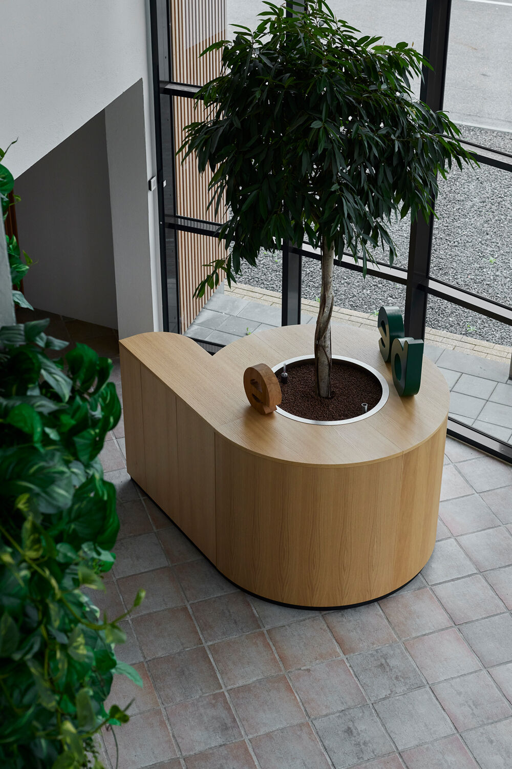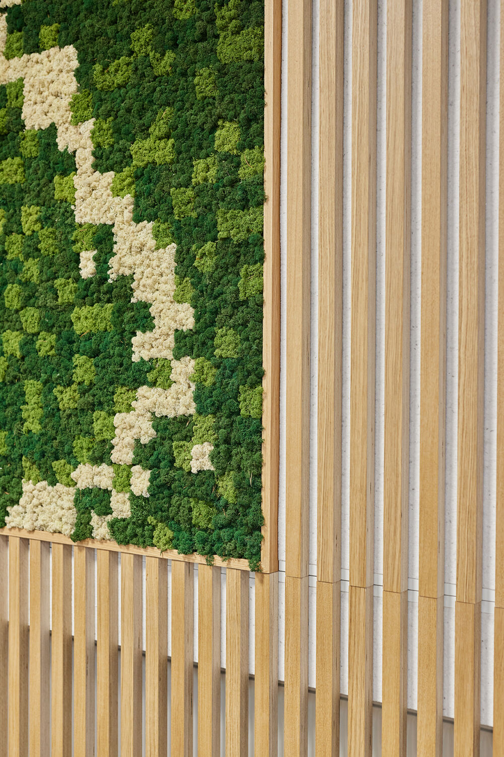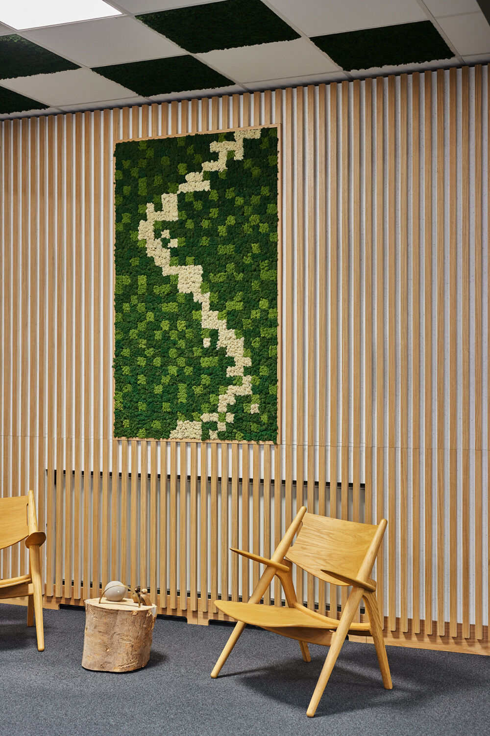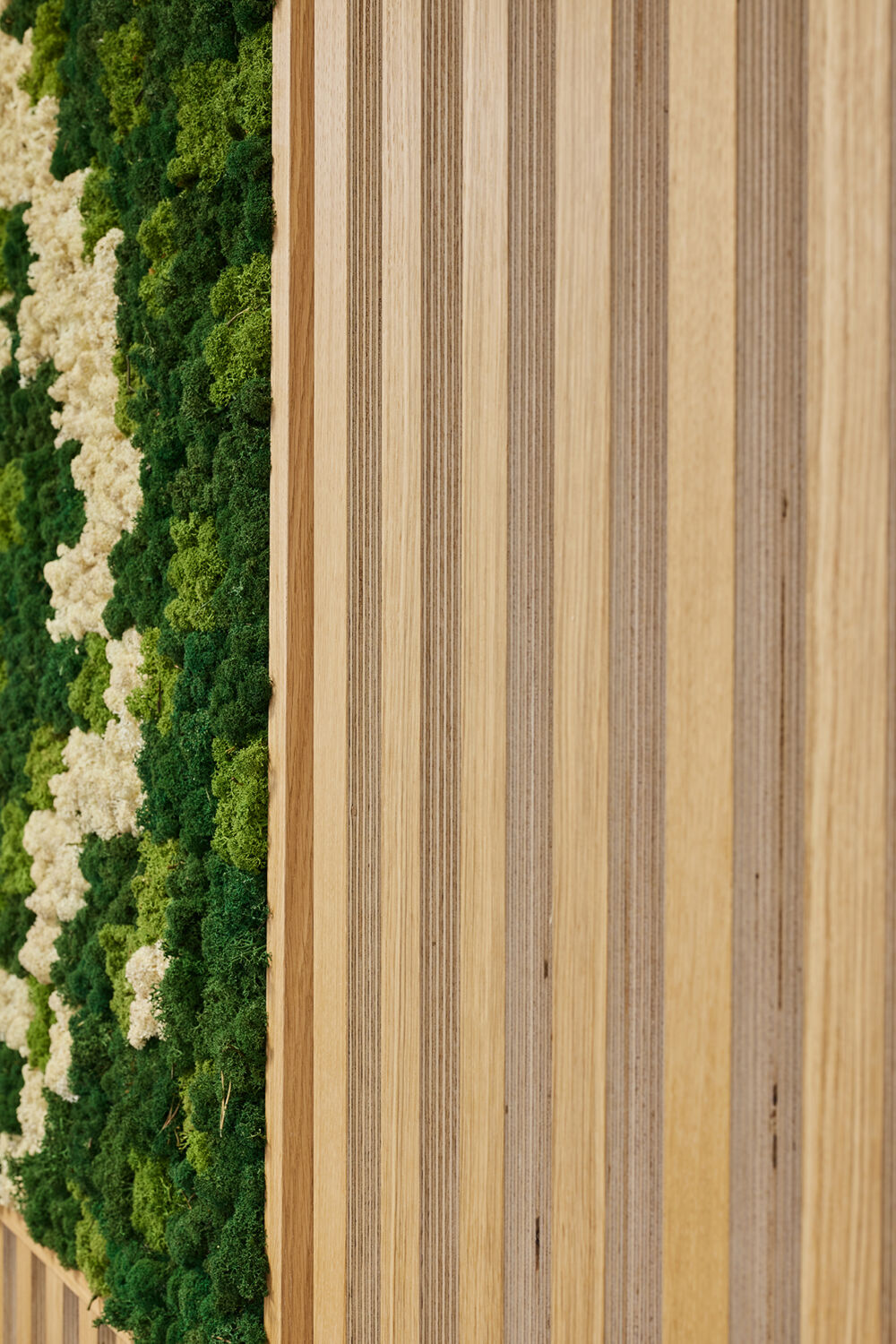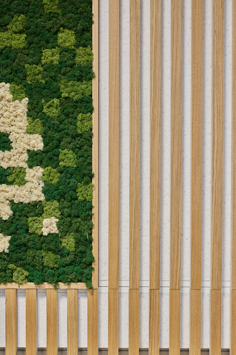 Det er ikke kun snedkerkøkkener, opbevaring, museumsmøbler og butiksindretning vi får lov til at lave. Nogle gange rammer vi også det grønne ind, og hjælper en virksomhed med god akustik.