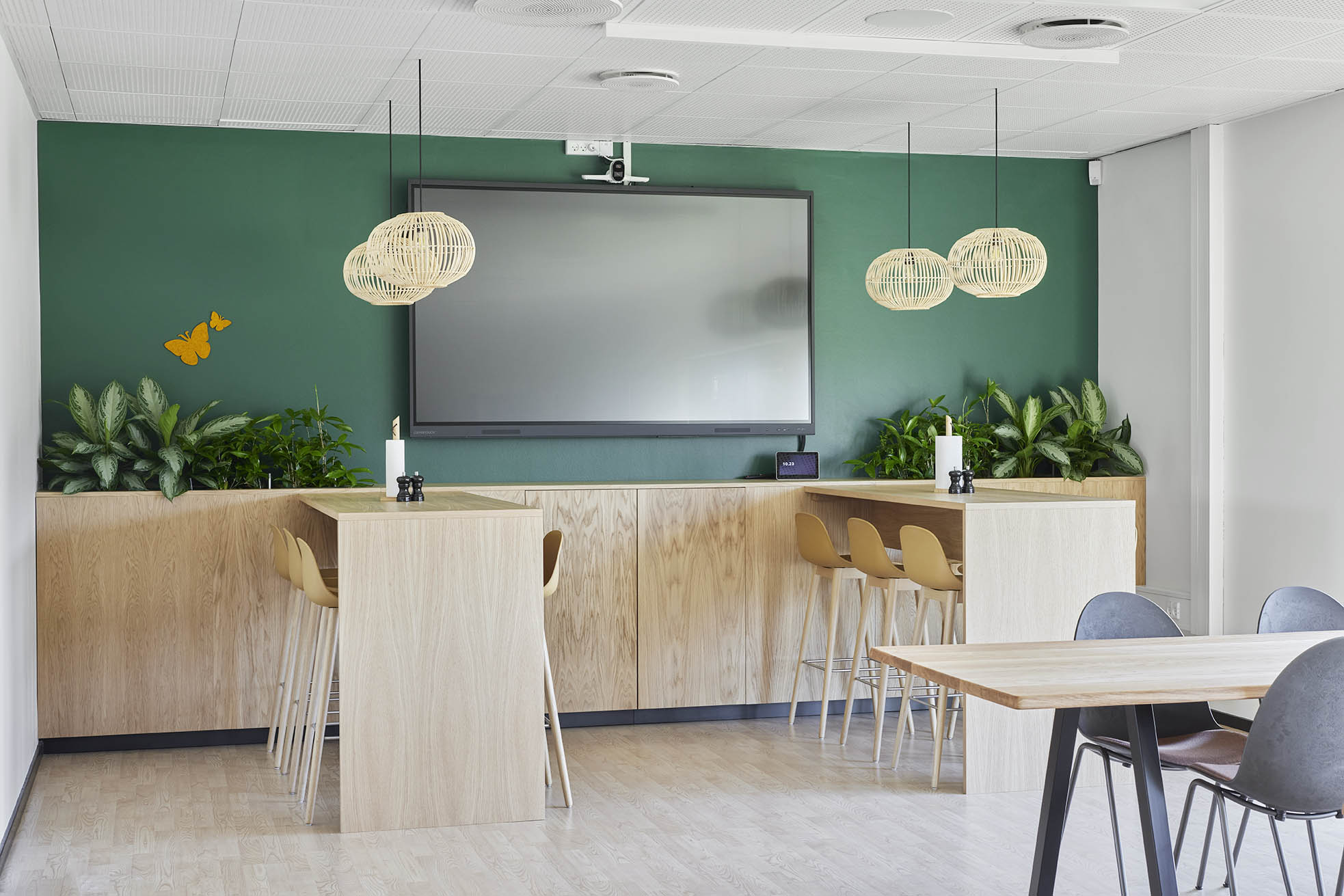 Her er der fokus på en behagelig og inspirerende indretning, der skal skabe en positiv og energigivende arbejdsdag for medarbejderne.