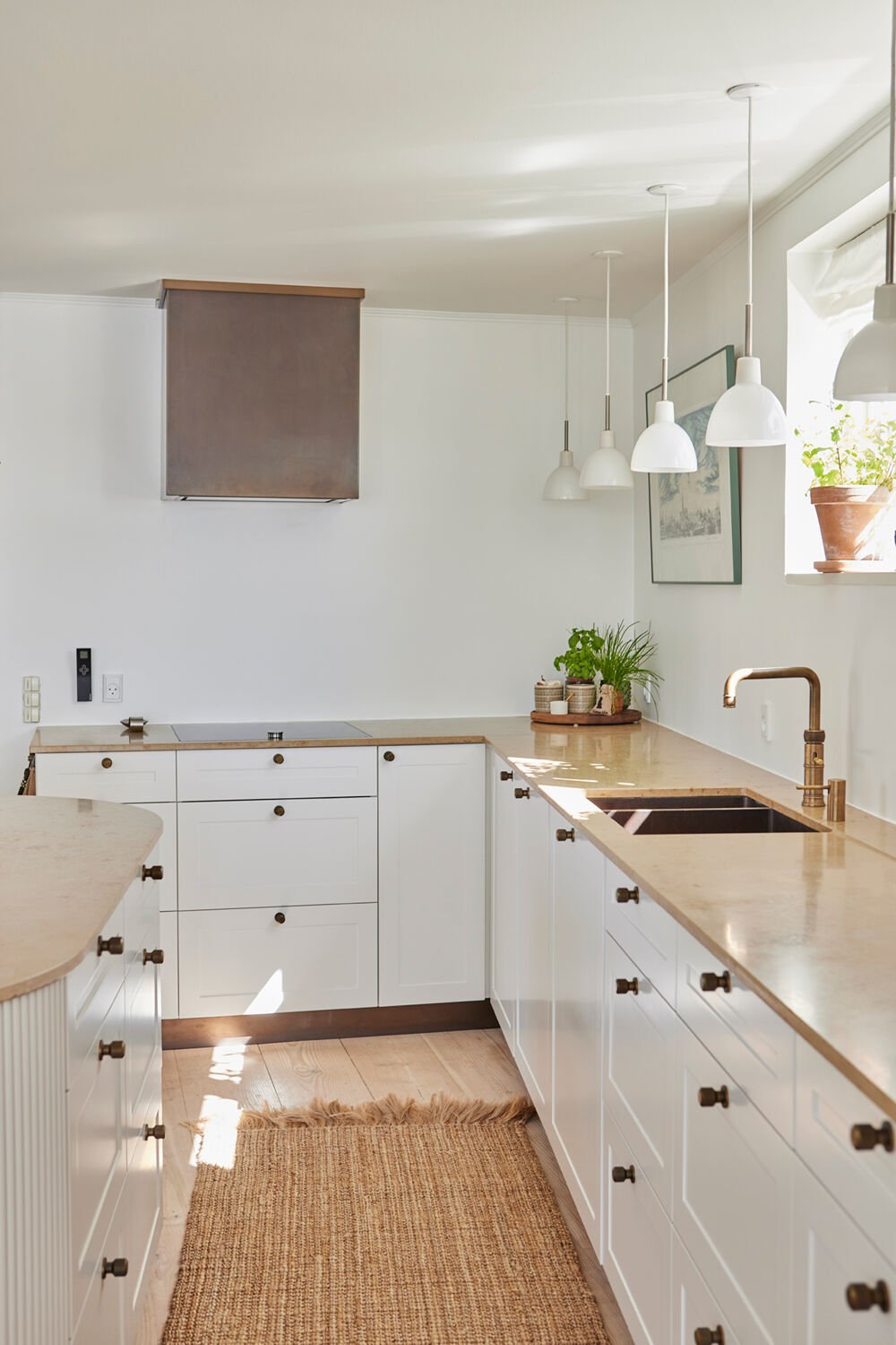 Til et dejligt hus med en særlig beliggenhed, har vi skabt et unikt køkken og badeværelse, der smukt integrerer nutidig funktionalitet med en nænsom bevarelse af den gamle, romantiske stil, som huset er bygget i.