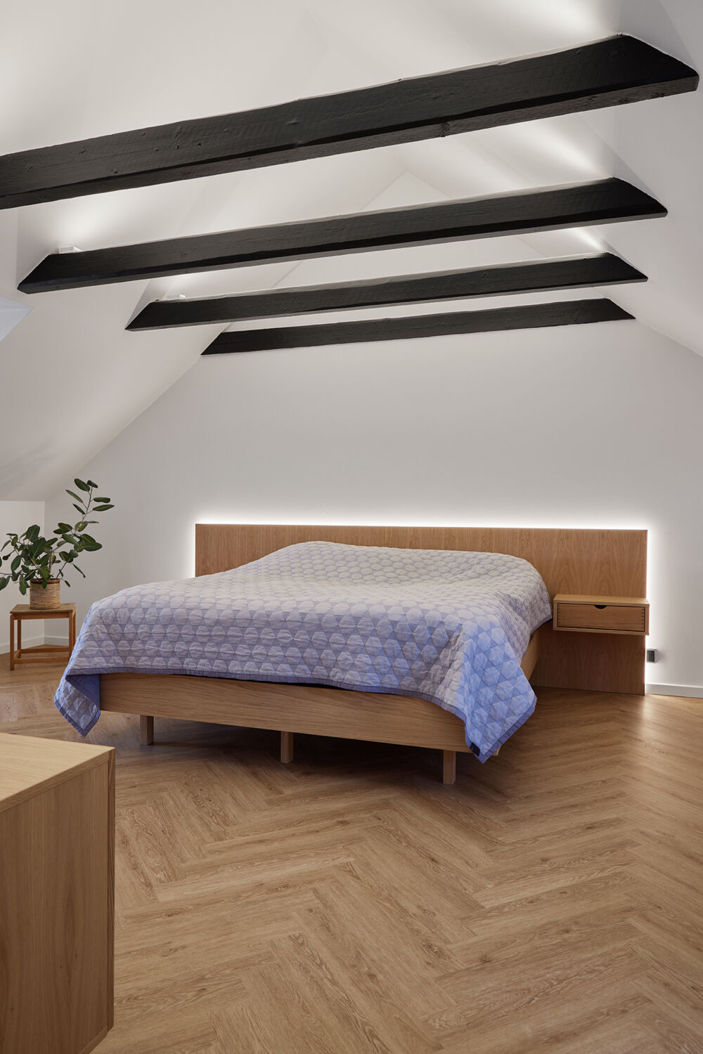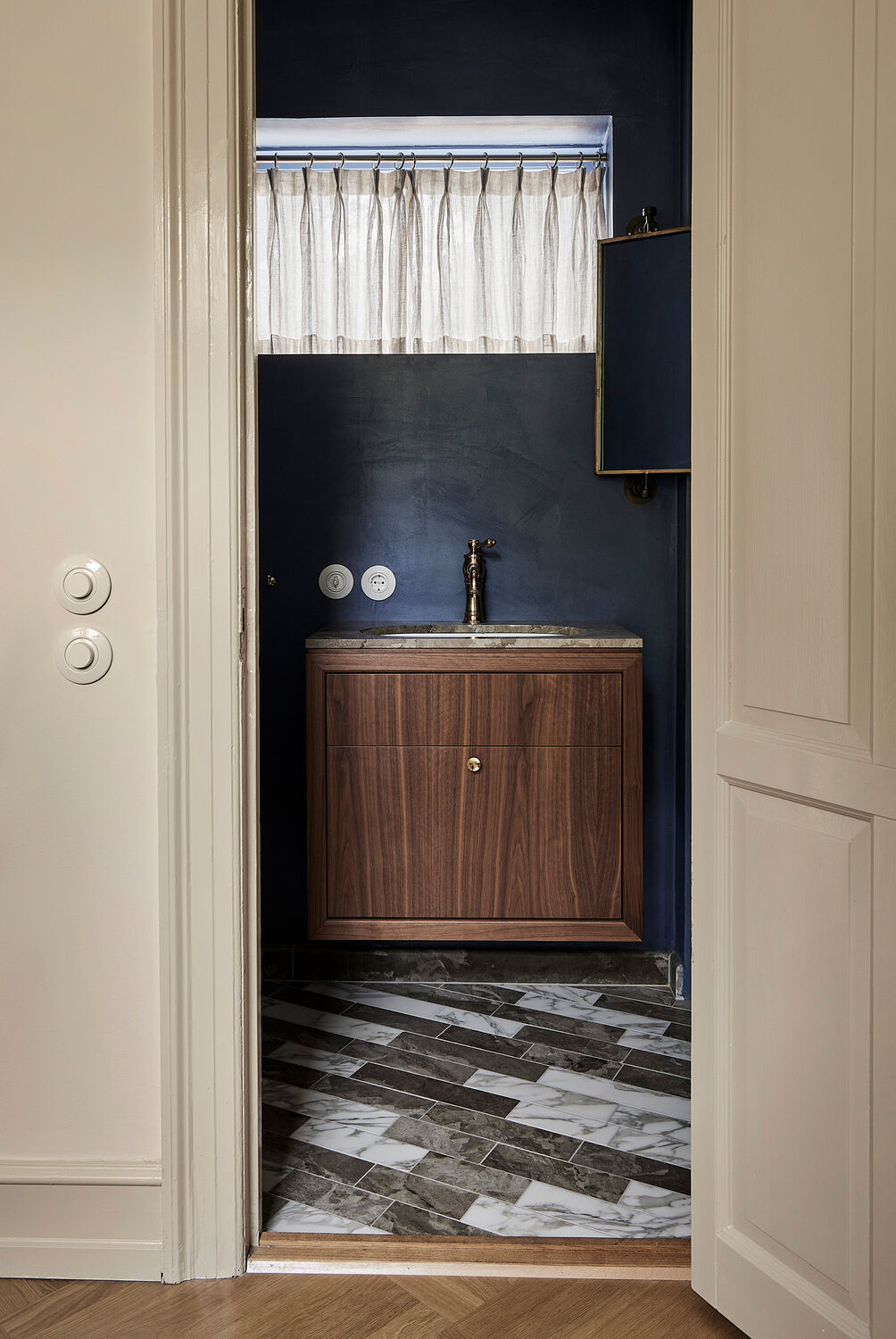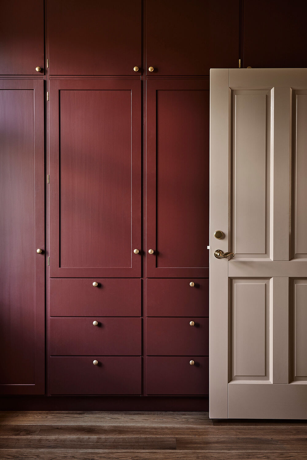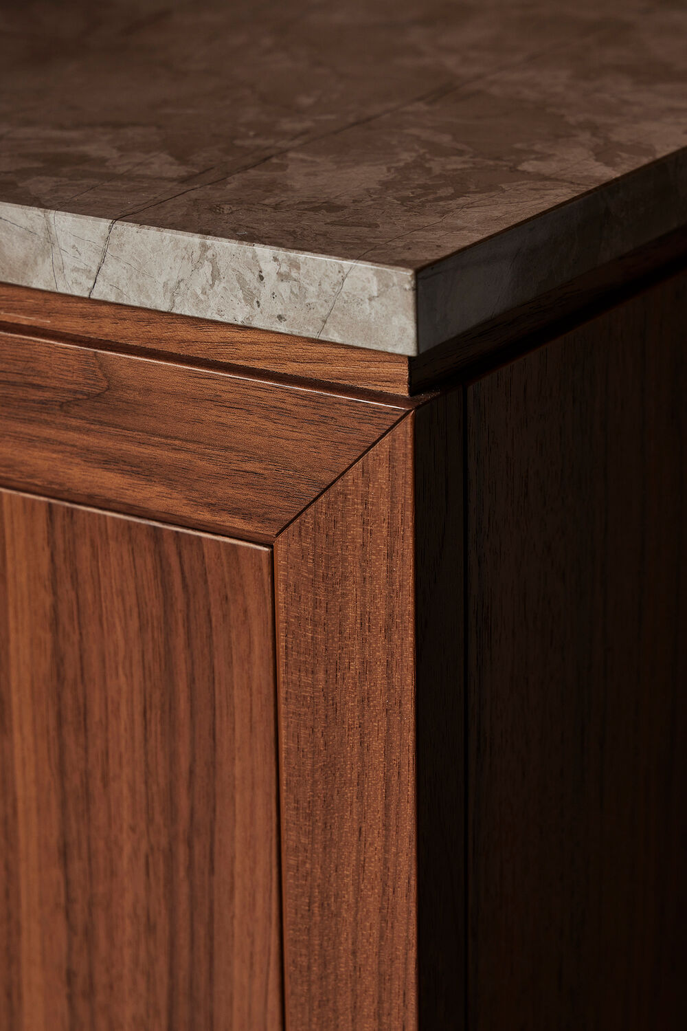 Boligens indretning skulle sammen med det smukke ydre, være elementer der bidrager til rolig atmosfære og med respekt for husets historie, yderlig inventar og ikke mindst familiens indretning. Det gav os mulighed for at udarbejde smukke snedkereret møbler med gode detaljer og i de bedste materialer.