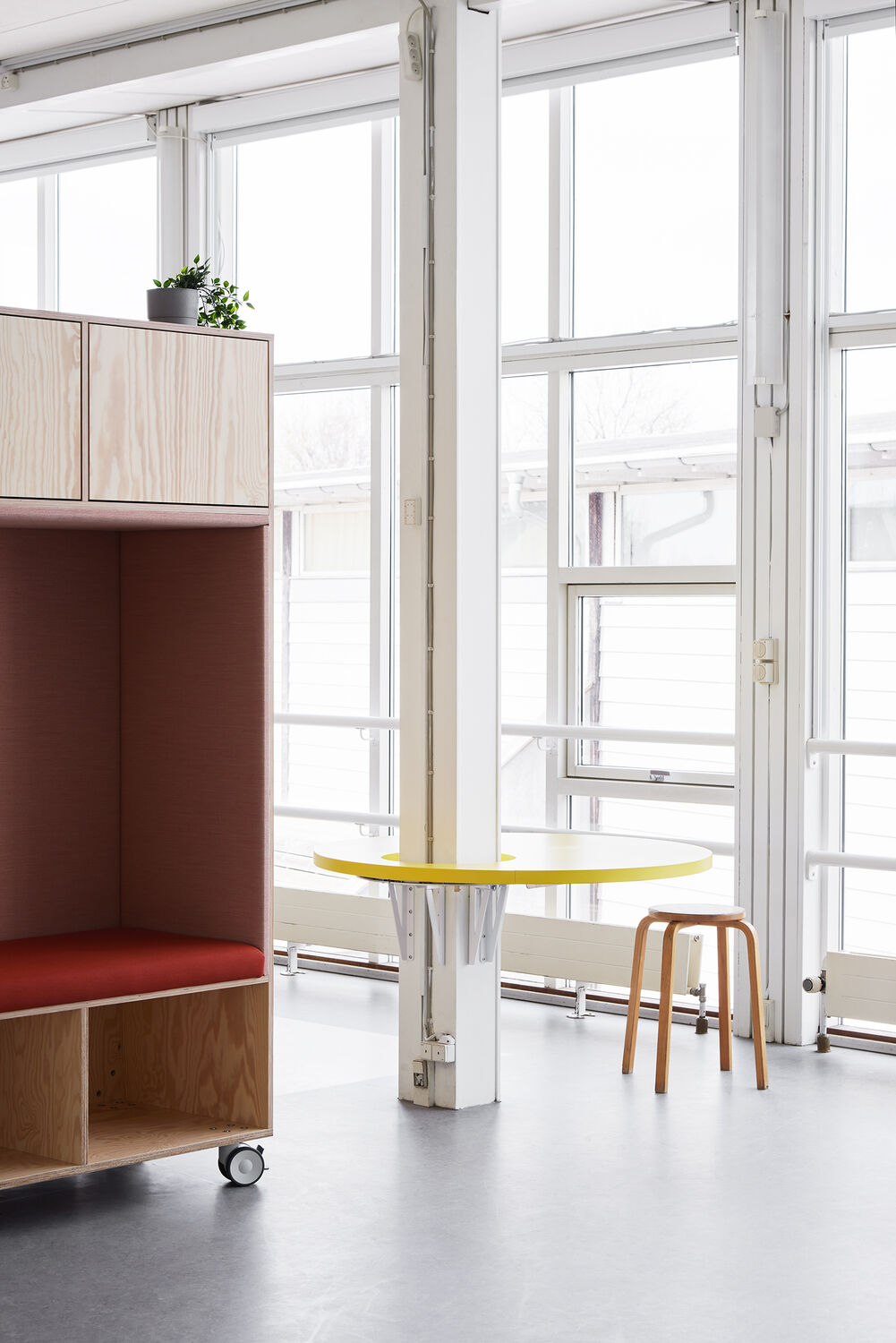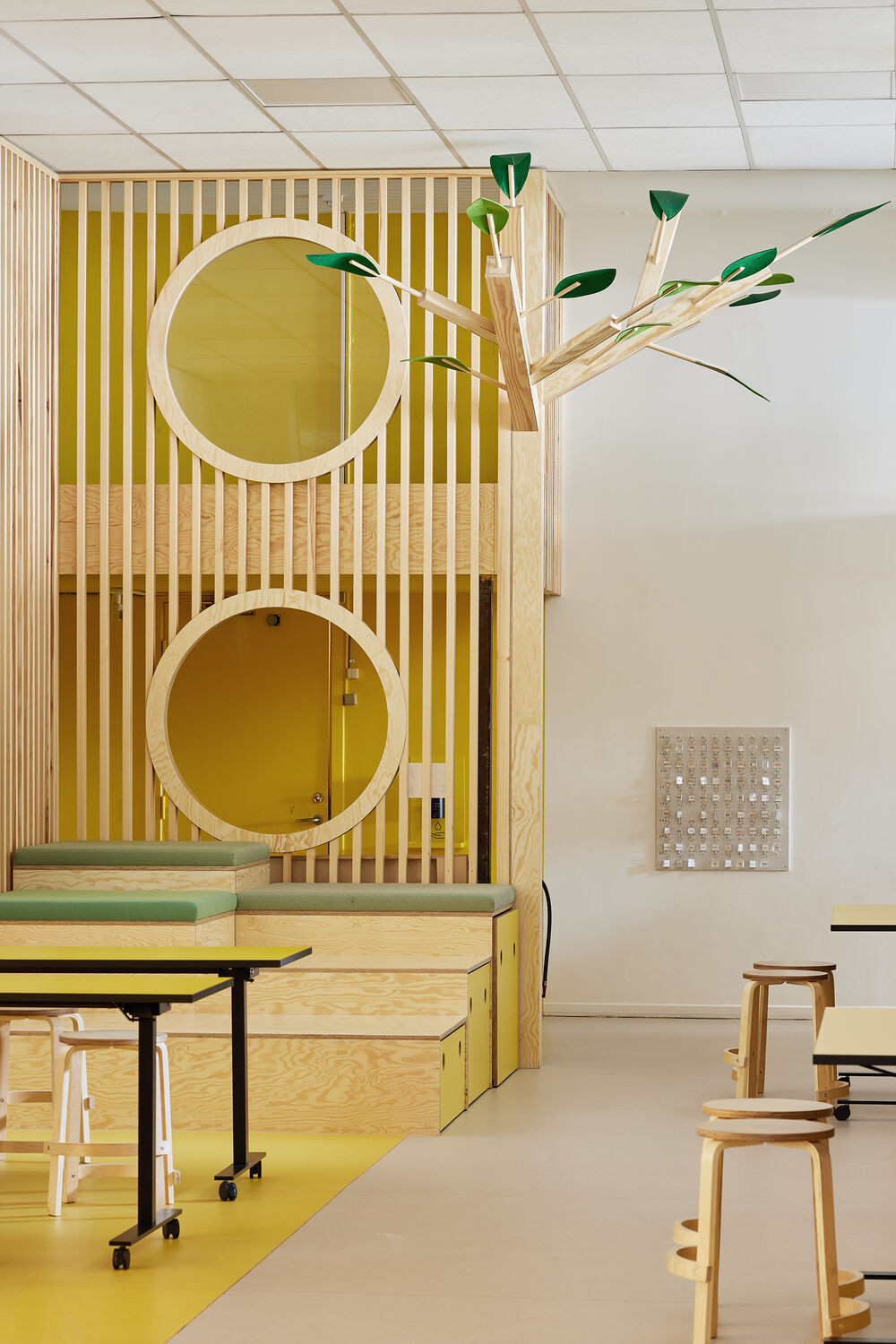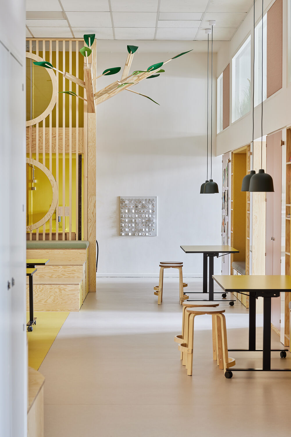 Til indretningen på Kvikmarkens privatskole, har vi sammen med Anne Krogh & Co skabt et farverigt univers, hvor der er plads til leg og læring. I to etager blev fællesområder gentænkt og designet, så eleverne både kan være aktive, arbejde i grupper, arbejde fokuseret i fællesskabet.