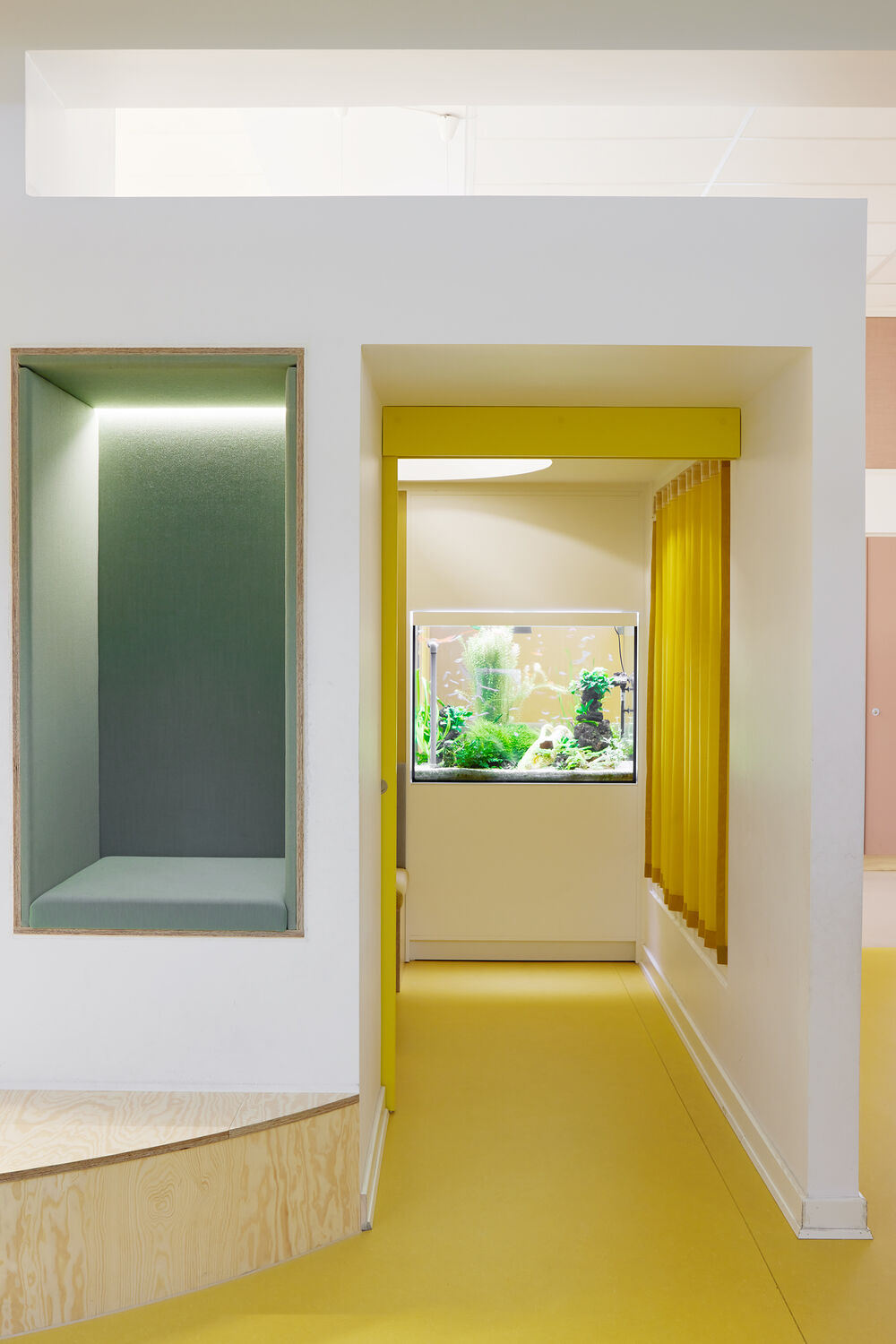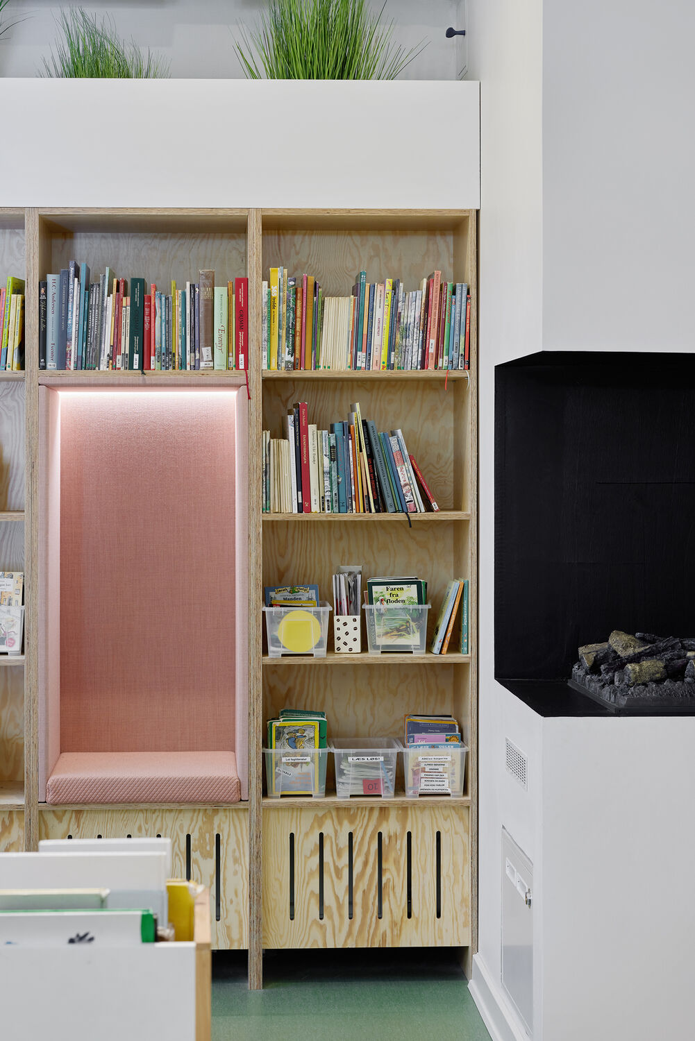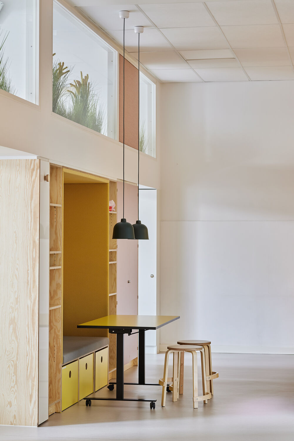 Anne Kroghs fine koncept gav skolen rum til at kunne varetage forskelligheder i børnehøjde, i en praktisk indretning der kan ændres fra fordybelse til større arrangementer.