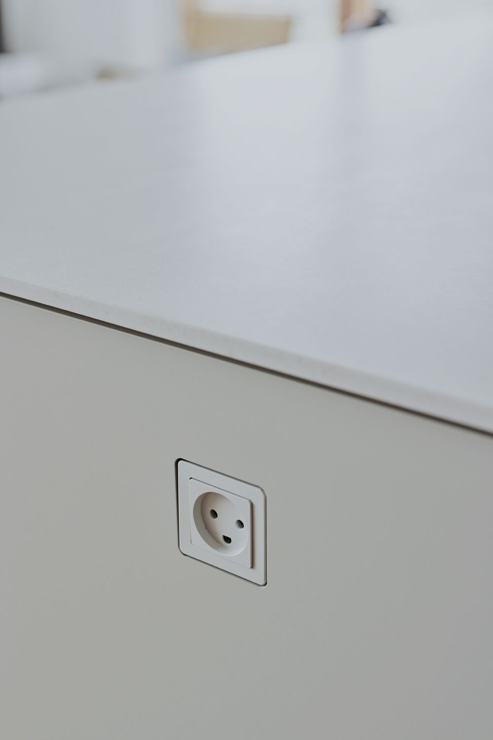 En slidstærk bordplade i Corian, solide fingertappede egetræsskuffer og en eksklusiv BORA-kogeplade med indbygget emfang sikrer den gode oplevelse af høj kvalitet og gennemtænkte løsninger.