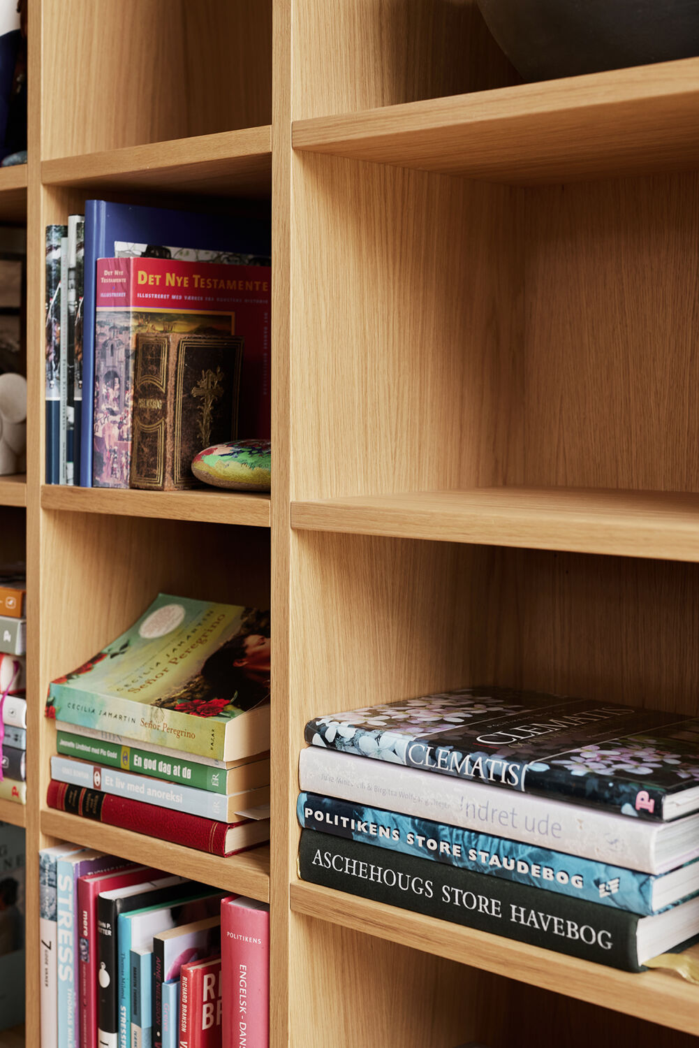 Når praktisk opbevaring skal være med til at gøre hverdagens funktionalitet let og enkel, forslår vi en indbygget vægreol, som den vi byggede til dette fine hjem.